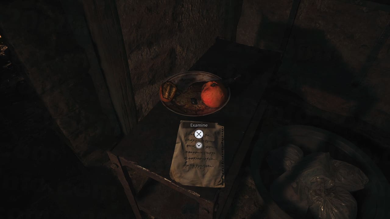 ③的牢房中看似什麼也沒有,但若是解讀一開始取得的的話,會發現字條中提到「沈浸在血水裡」一段文字,因此玩家可以調查牢房中的這個木盆,並獲得。
